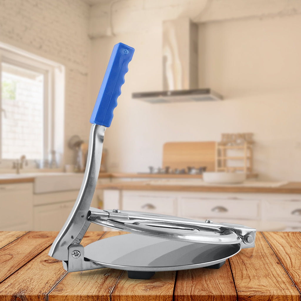 7149A PURI PRESS MAKER - STAINLESS STEEL PURI MAKER PRESS MACHINE - ROTI CHAPATI PRESSER FOR HOME -KHAKHRA- PURI MAKER PRESS MACHINE WITH HANDLE, MANUAL PURI MAKER (MEDIUM)