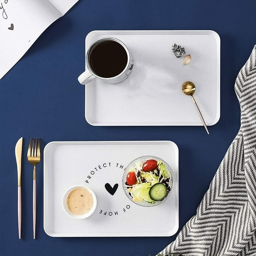 Add charm and purpose to your kitchen or dining space with this premium-quality 29x21 cm rectangular serving tray. Crafted from durable plastic, this lightweight yet sturdy tray features an inspiring quote “Protect the Source of Hope” beautifully printed with a heart motif in the center. Its clean background and bold black typography make it both a functional and visually appealing piece.
